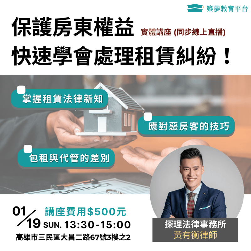 來參加我們的【房東與未來房東都該知道的租賃法】專業講座!