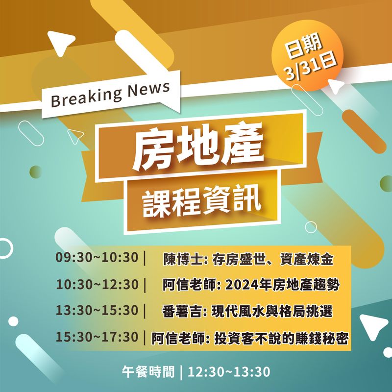 這次的課程絕對不容錯過!我們特別找來了存房盛世的陳義明博士,以及番薯地產的番薯吉,他們可是狂賣知識不藏私,肯定讓你眼睛為之一亮!